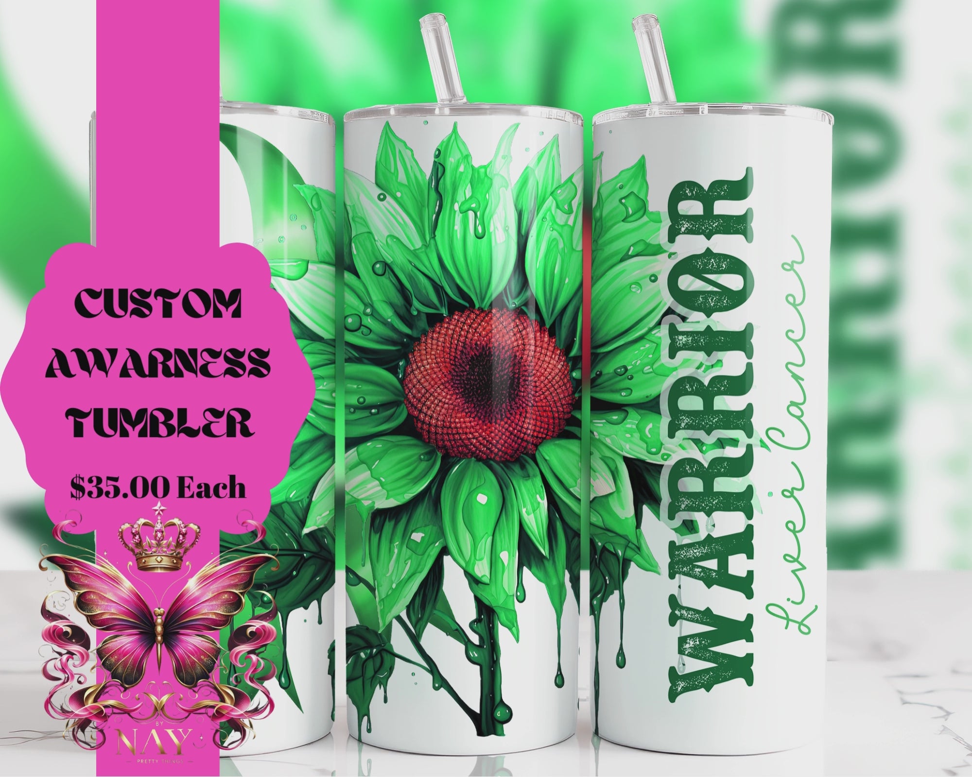 Our "Empowerment Blossom Sunflower Tumbler" is inspired by the resilience and courage of warriors and survivors. This 20oz tumbler, adorned with a radiant sunflower design, embodies the spirit of strength and support. Created through a thoughtful process, each tumbler is designed to be a symbol of hope and encouragement.